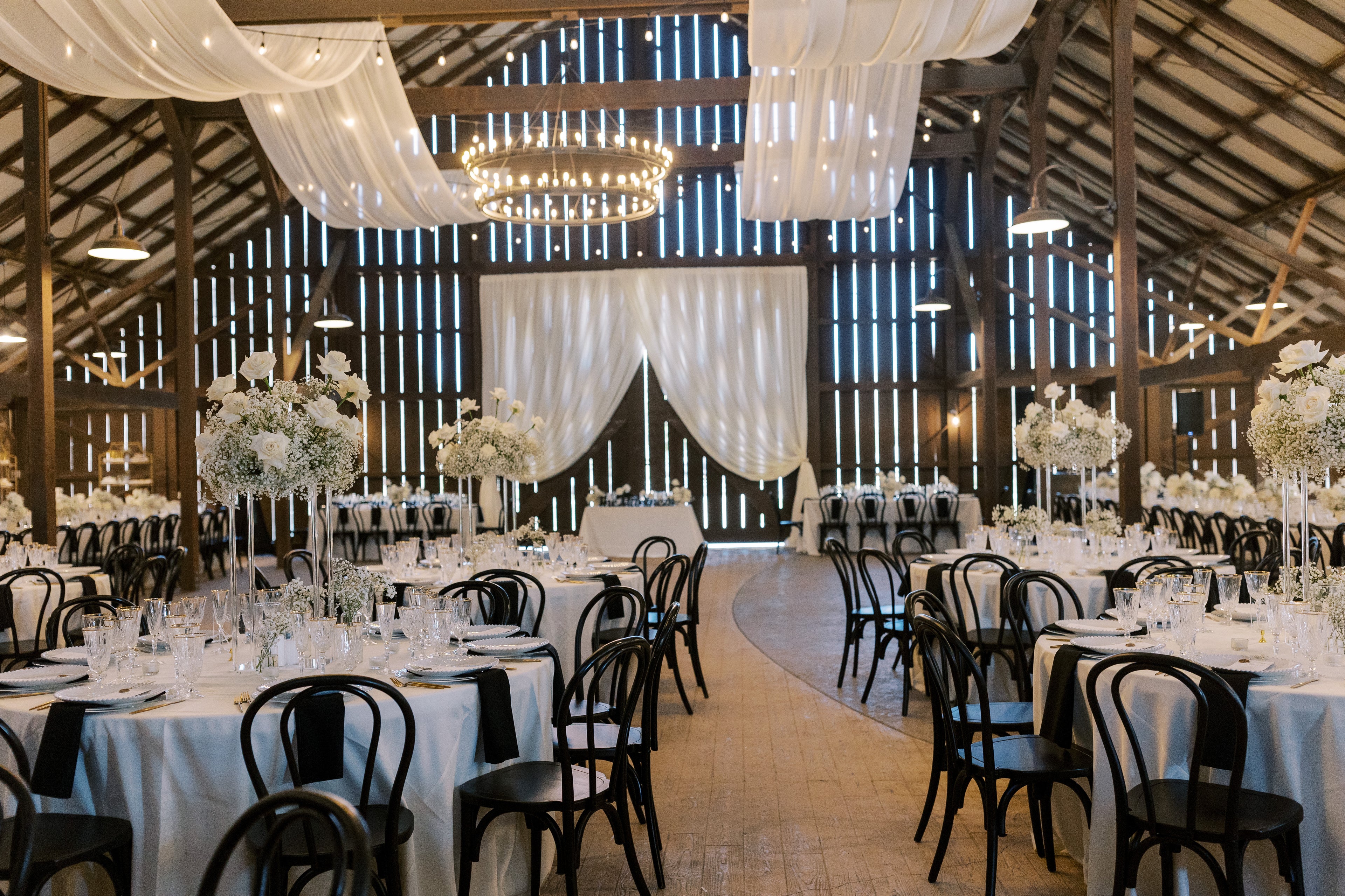 Reception in black and white~ We love adding the floral details. Photo Credits: Danielle Honea