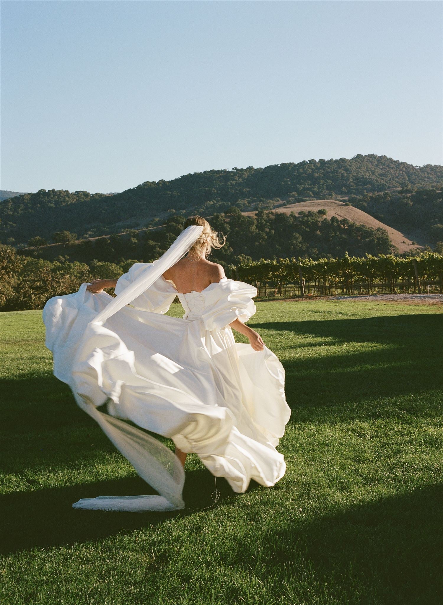 An unforgettable wedding at White Barn in Edna Valley, with single stem white roses lining the aisle, unforgettable mountain views, and a ceremony that takes your breath away.